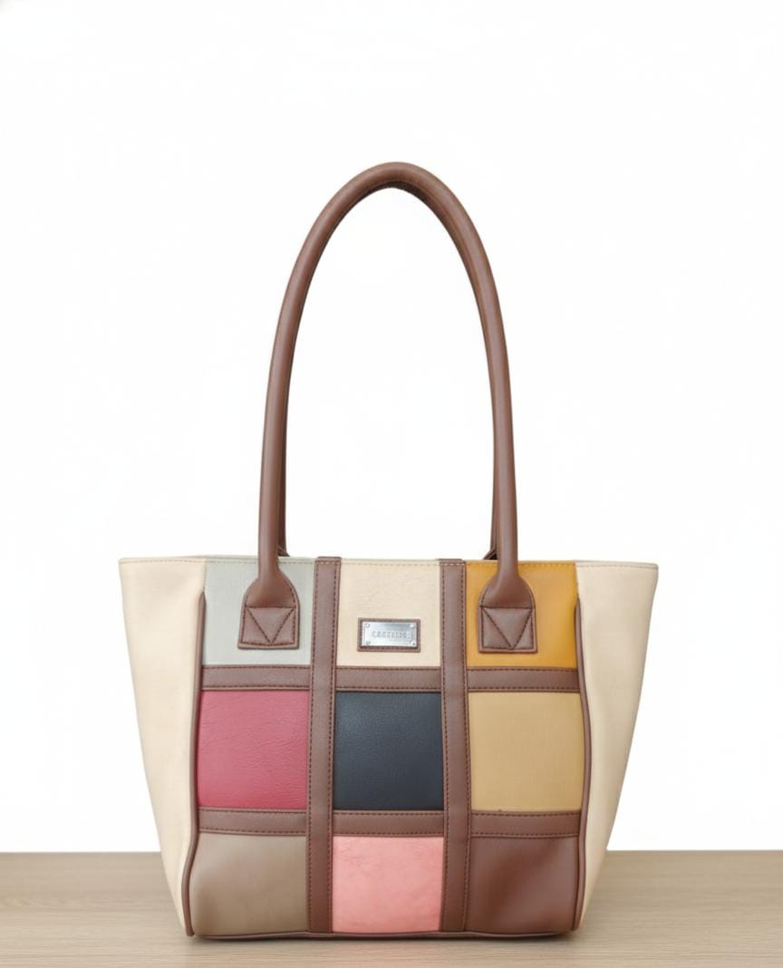 Be the first to review “Artistic Patchwork Faux Leather Tote Bag – Multi-Tone Elegance” Cancel reply