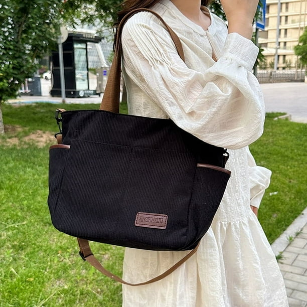 Chic Corduroy Multi-Pocket Tote & Crossbody Bag – 4-Piece Color Set