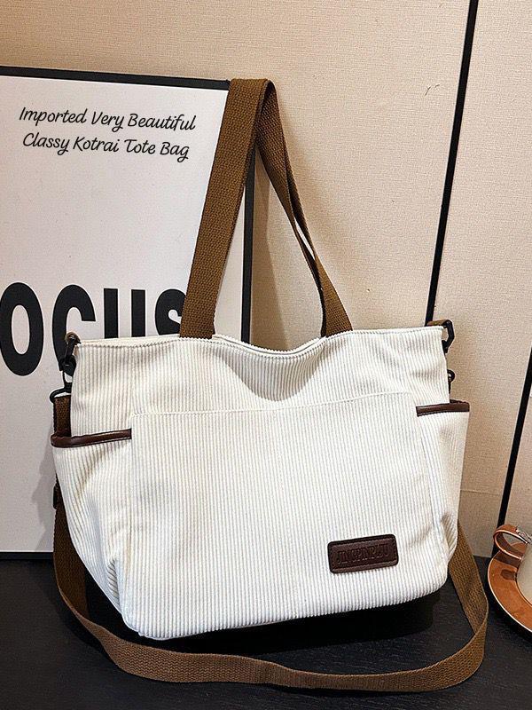 Chic Corduroy Multi-Pocket Tote & Crossbody Bag – 4-Piece Color Set
