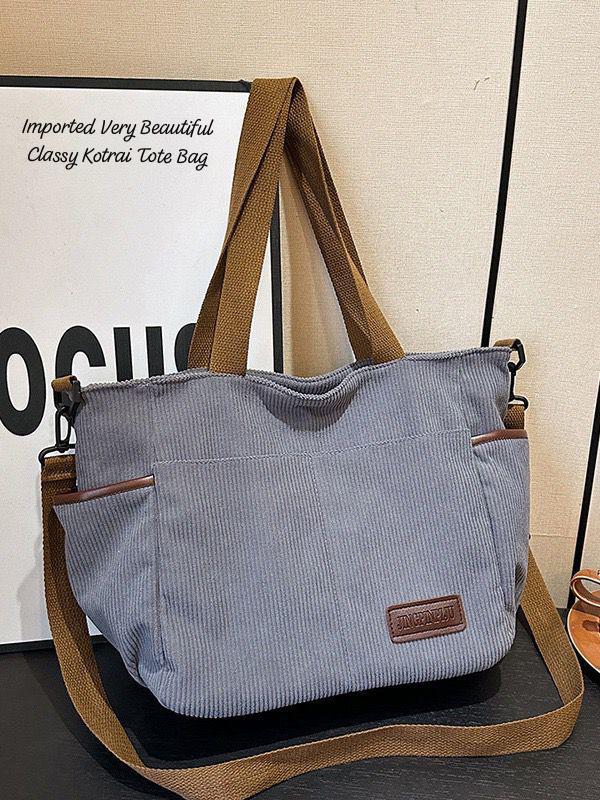 Chic Corduroy Multi-Pocket Tote & Crossbody Bag – 4-Piece Color Set