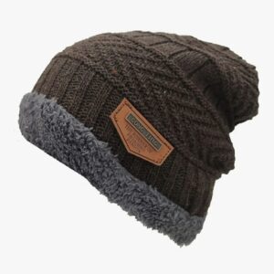 Stay warm and fashionable with this essential knitted beanie, designed for ultimate comfort in chilly weather. Crafted in a rich brown hue with intricate knit patterns, this hat features a plush fleece lining and a distinctive “SONG TING” label, making it a perfect blend of style and practicality.