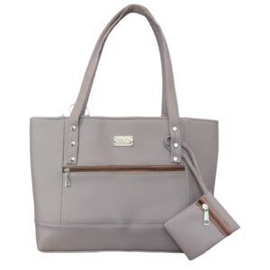 This taupe tote and pouch set is ideal for those who appreciate coordinated accessories that offer both sophisticated style and practical functionality for work, errands, or social engagements.