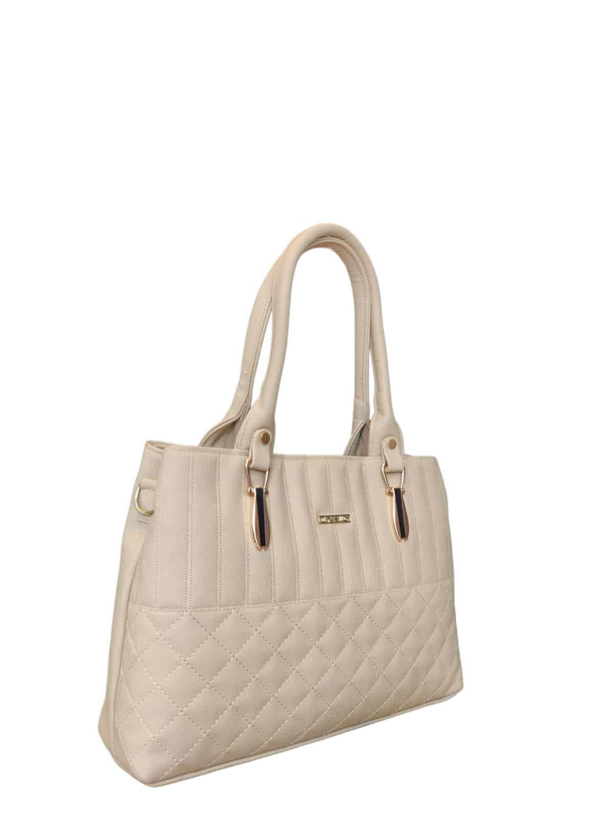Elegant Quilted Satchel Handbag in Sophisticated Taupe