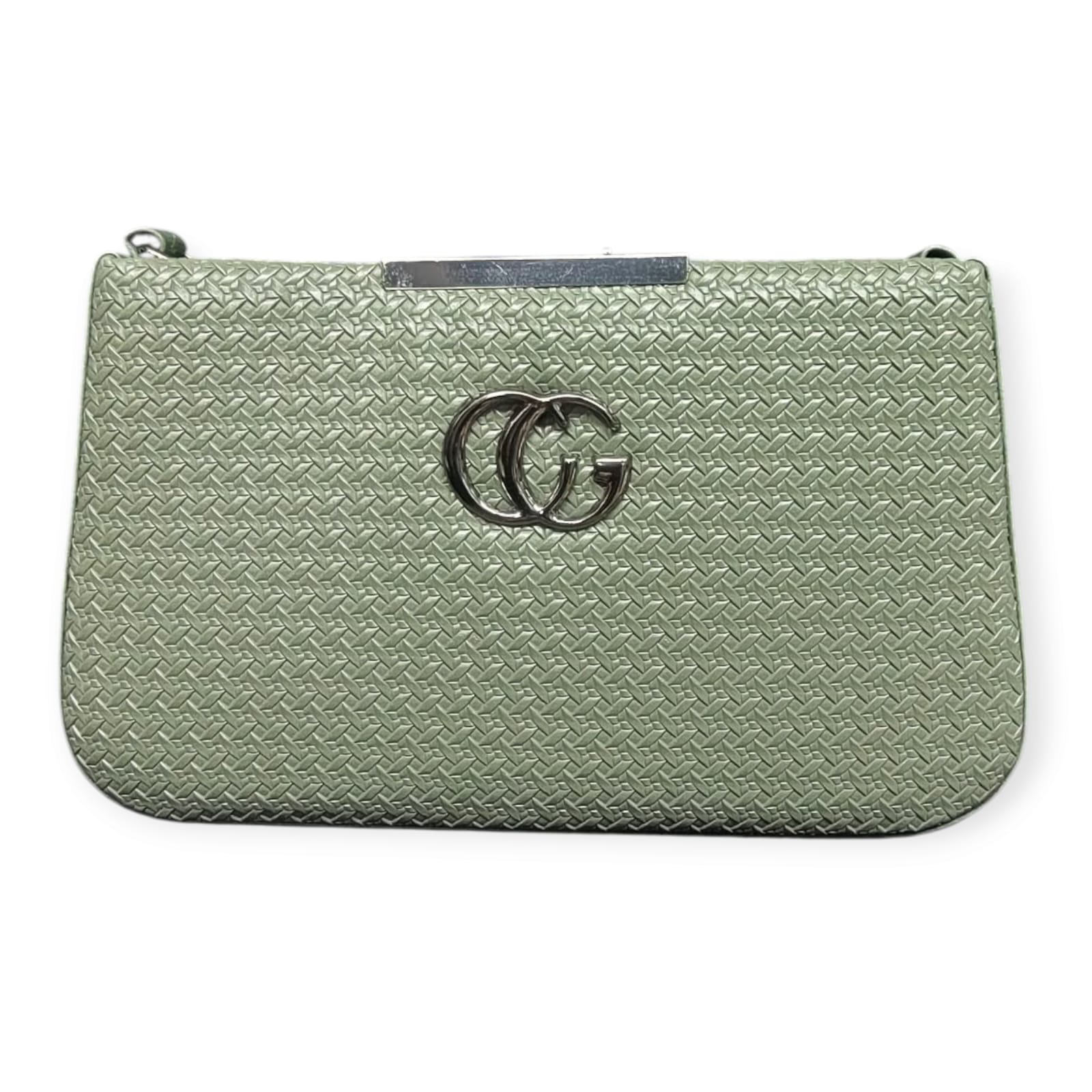Elegant Textured Crossbody/Clutch Bag with “CG” Style Embellishment – Chic Sage Green