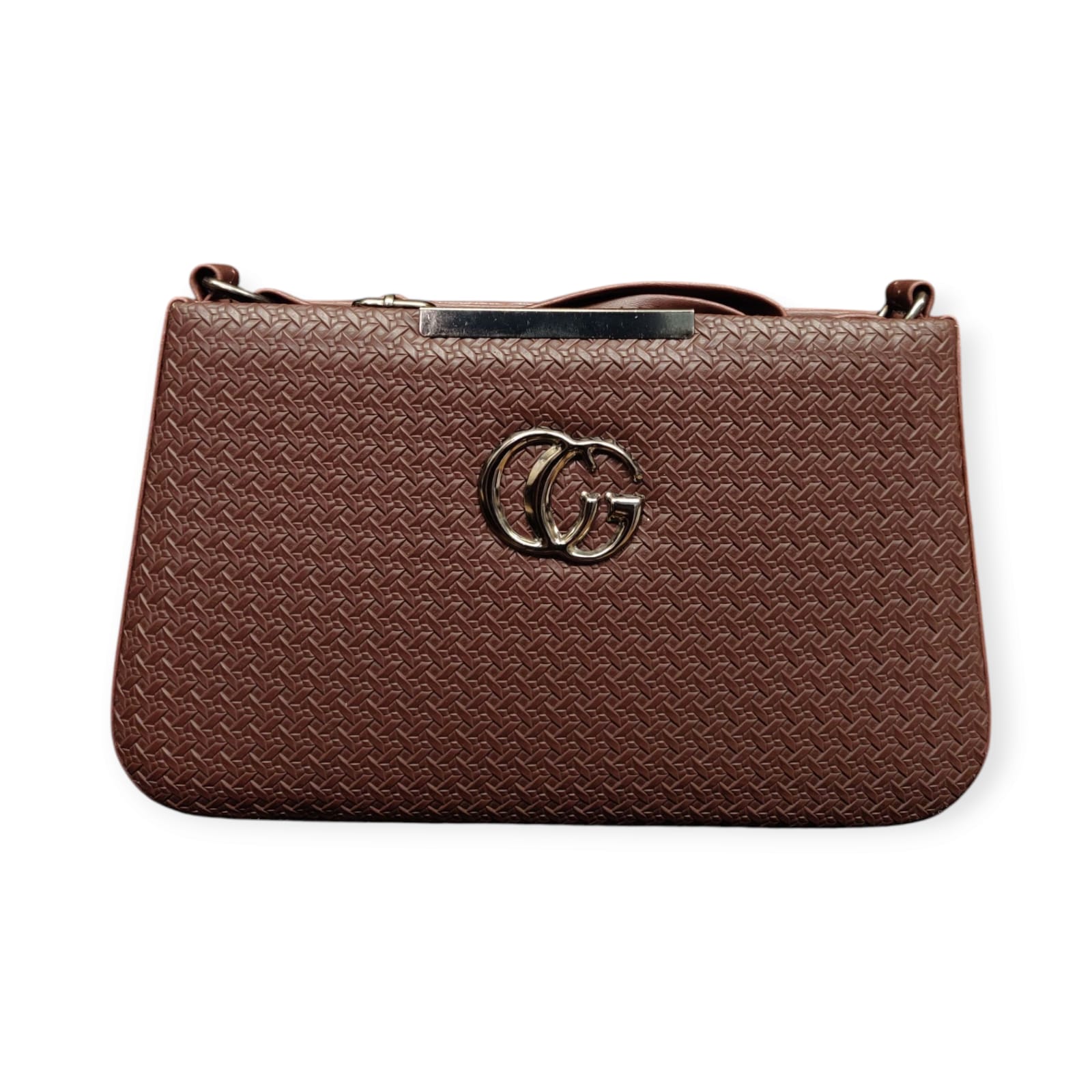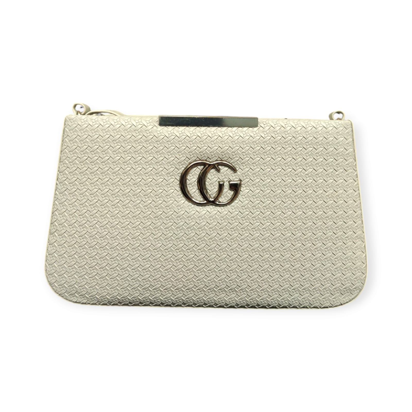 Prominent “CG” Style Emblem: A bold, silver-tone interlocked emblem on the front flap serves as a central decorative element.