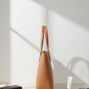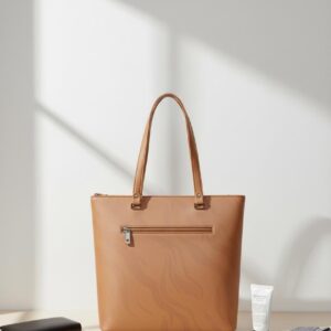 Crafted from smooth, durable faux leather, this tote maintains a structured yet supple silhouette. It’s equipped with comfortable top handles (which appear to be wrapped for protection), ensuring ease of carrying throughout your busy day. The spacious interior, likely secured by a top zipper closure, is perfect for organizing all your daily essentials, making it ideal for everything from work documents to personal items.
