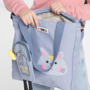 Whether you’re heading to school, the gym, or a casual day out, this cat-themed tote bag with its matching pouch is a charming and practical choice for carrying all your necessities with a smile.