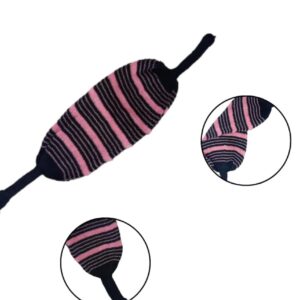 Discover the fun and functionality of these unique knit items, available in a vibrant multi-color pack of red, teal, and pink stripes on a dark base. Their innovative design allows them to serve multiple purposes – from a stylish slouchy beanie with a playful “tail” to a practical drawstring pouch.